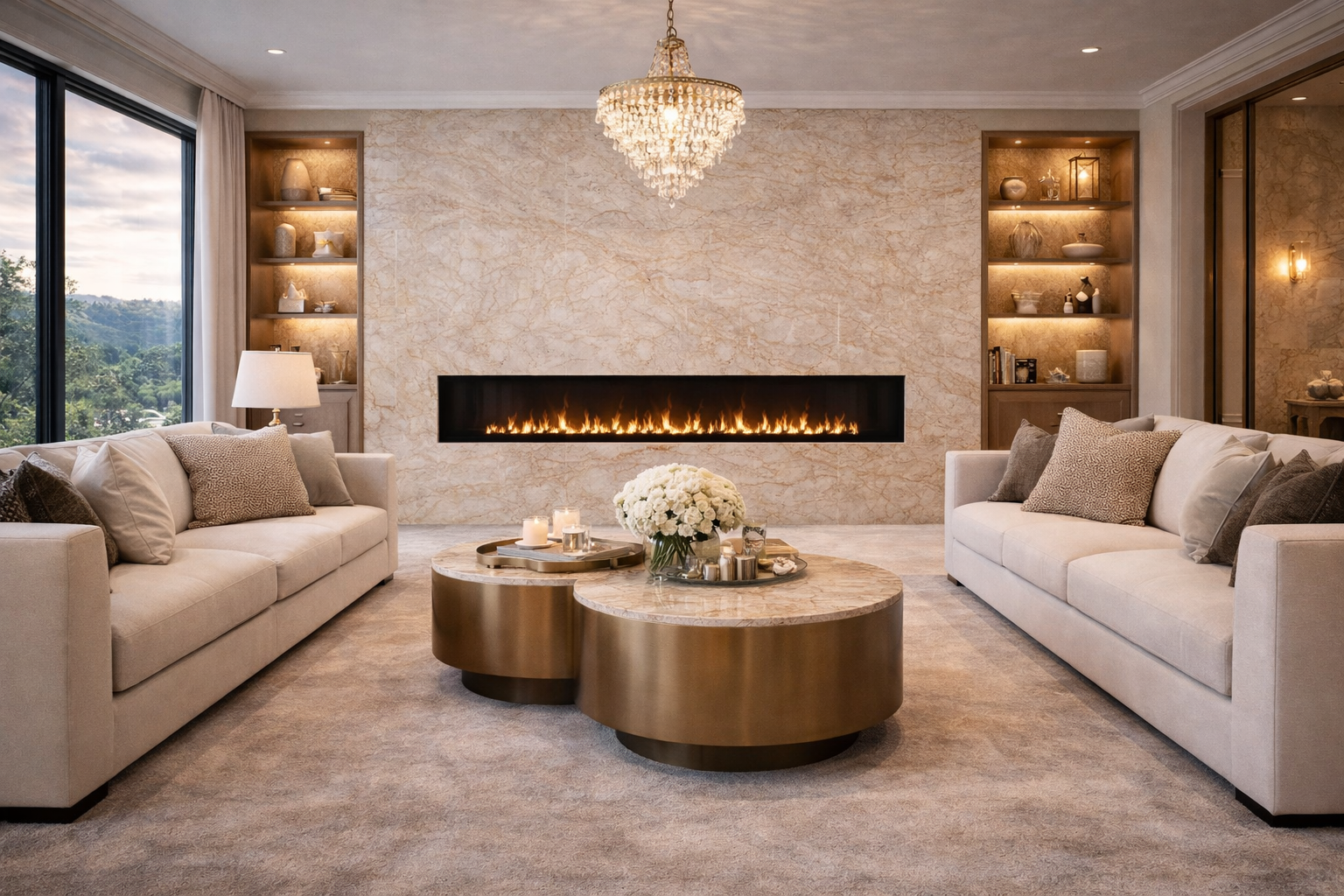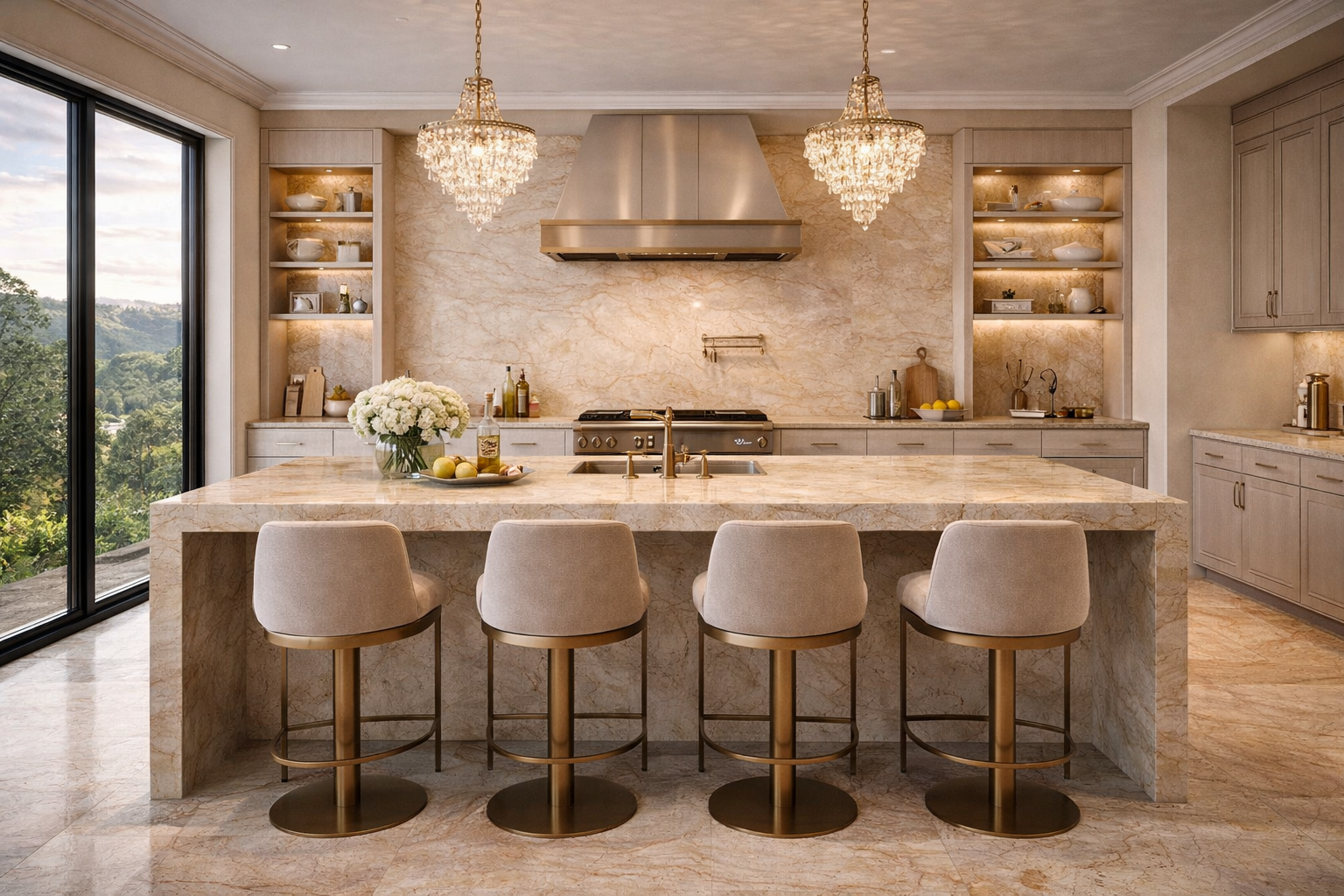 Marbre beige clair aux nuances douces et homogènes. Apporte luminosité et élégance aux intérieurs contemporains comme classiques.