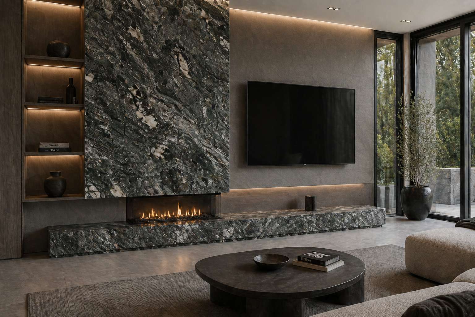 Le Krypton en quartz révèle une profondeur intense aux nuances gris foncé et anthracite. Élégant et contemporain, il s’intègre parfaitement dans des projets architecturaux modernes et sophistiqués.